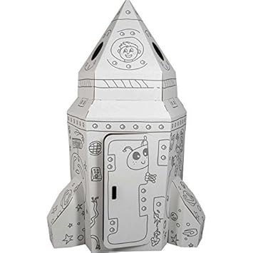 Kunst und Kunsthandwerk in 3 Dimensionen. Weltraumrakete aus Wellpappe mit Innenbeleuchtung und Abfluggeräusch, Countdown inklusive. (Enthält Batterien) Kooperatives Spiel. Mit Gemälden, um es nach Belieben zu schmücken, die Kreativität wird angeregt. Es enthält auch sagenhafte gratis herunter ladbare Weltraumgeschichten. Einfache Montage und Demontage. Zusammenfaltbar, kompakt, leicht zu verstauen und in Sekundenschnelle zu bauen. Keine Klebstoffe. Gestalten, zusammenbauen und dekorieren Sie Ihr eigenes Spielzeug. Lassen Sie Ihr Kind es nach Belieben personalisieren. Langlebig und sicher, keine scharfen Kanten, so dass Kinder immer wieder sicher genießen können. Zertifizierung EN71-1, 2, 3, ASTM. Hergestellt aus Recyclingpapier. Maße: 82 x 76 x 119 cm. Einmal zusammengebaut dient es als 'Spielzeughaus'. Ab 3 Jahren. › Weitere Produktdetails