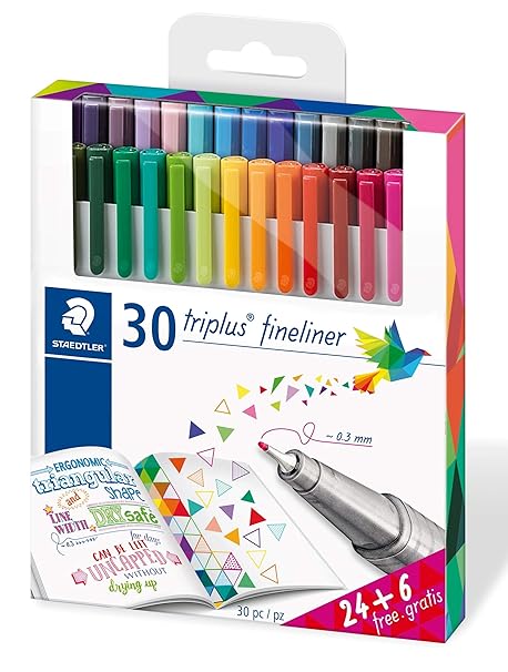 Linienbreite ca. 0,3 mm, ergonomische Dreikantform - für entspanntes Schreiben und Malen Superfeine, metallgefasste Spitze, Tinte auf Wasserbasis, auswaschbar aus vielen Textilien Dry Safe - kann tagelang offen liegen ohne einzutrocknen (Prüfklima nach ISO 554, außer Neon-Farben) PP-Schaft garantiert lange Lebensdauer, kein Ausdampfen der Tinte, Made In Germany Lieferumfang: 20 brillante Farben in der stabilen, aufstellbaren Staedtler -Box