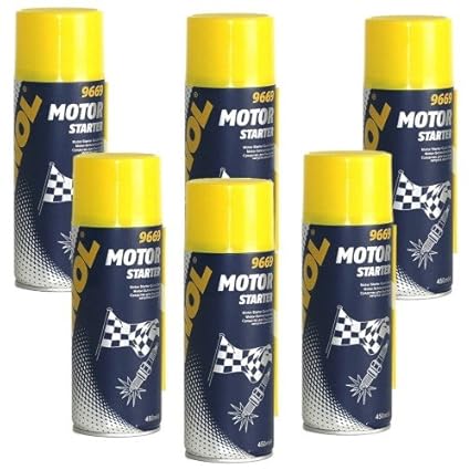 MANNOL Motor Starter ist ein Hilfsmittel, das den Motorstart vereinfacht und beschleunigt. Es stellt eine zuverlässige Hilfe beim Kaltstart, bei hoher Feuchtigkeit, bei feuchten Zündkerzen und einer schwachen Batterie sicher. Dieses Produkt ist sparsam im Verbrauch. Motor Starter direkt auf den Luftfilter oder in die Luftansaugöffnung sprühen und den Motor sofort starten. Beim Benziner das Gaspedal leicht durchdrücken, beim Diesel das Gaspedal bis zum Anschlag durchtreten. Nicht auf Zündkerzen u Kraftstoffadditive > Benzinadditive, - Artikelnummer: 9669