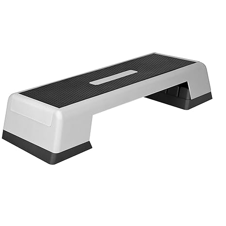 Aerobic-Stepper mit breiter Plattform und 2 Block-Sets zum Erhöhen Ideal für leichtes, fettverbrennendes Step-Aerobic-Training und andere Workouts 3-Tritthöhen einstellbar zur Anpassung des Schwierigkeitsgrades; die 3 einstellbaren Höhen betragen 10, 15 und 20 cm Rutschfeste Trittfläche für ein sicheres Workout (107 x 40 cm); Traglast: 150 kg Maße (L x B x H): 107 x 40 x 10 cm; mit einjähriger, eingeschränkter Garantie durch AmazonBasics