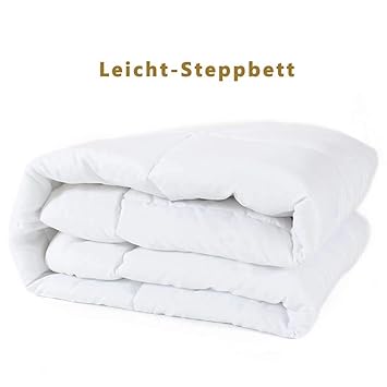 Plüsch Material: 320GSM Hergestellt aus 100% Baumwolle mit 100% Mikrofaser, ultra-weich und komfortabel. Perfekte Temperatur: Die angemessene Dicke passt zu allen Jahreszeiten. Angenehmen Schlafkomfort das ganze Jahr ermöglicht diese Bettdecke. Square Steppverarbeitung: Es können die Füllung jedes Quadrats balancieren. Ein Verrutschen der Füllung ist somit ausgeschlossen. Bessere Wärmeableitung und mehr flauschig. Die Ausführung als Leicht-Steppbett ist besonders im Sommer für warme Sommernächte geeignet. Vier Ecken haben ein Band Design: Der Band sichert Bettbezug an Ort und Stelle. Die Bettdecke bietet Sie einen erholsamen Schlaf und angenehme Träume. Einfache Pflege: Waschbar bis 40 Grad, trocknergeeignet. Schadstoffgeprüfte Textilien nach Öko-Tex Standard 100.