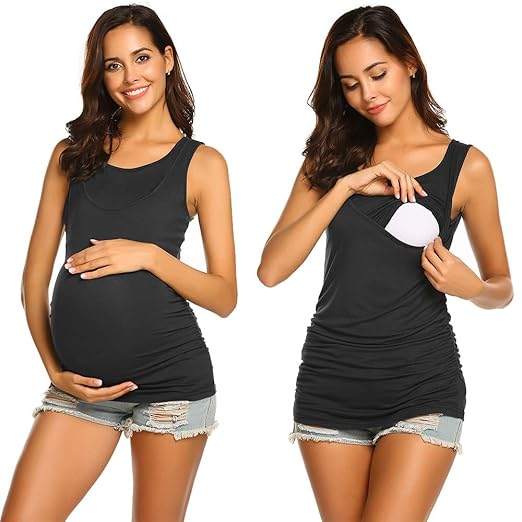 ZUMIY Still-Shirt Still-Top, Mutterschaft Shirt Stillen Top- Double Layered Geraffte Kleidung, Nursing Tank top
