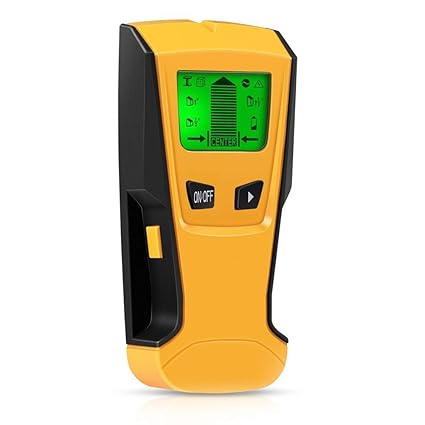 ? 3 in 1 Detektor:INTEY-Multifunktionsdetektoren erfassen Wände, Metalle und Drähte. Der Detektor kann auch hinter Fliesen, Wänden, Böden, Decken usw. untersuchen.Es kann die Position der Wand Metall- und Wechselstromkabel in der Wohnung lokalisieren. Es wird eine Warnung ausgegeben, wenn der Detektor diese Sachen erkannt. Gleichzeitig zeigt der Bildschirm mit einem auffälligen Balkendiagramm an, um eine bessere Orientierung zu ermöglichen. ? Der Detektor verfügt über mehrere Scan Modi und hat hohe Präzision. Wechselstromkabel:Der Detektor kann Wechselstromkabel bis zu einer Tiefe von 2 Inch(51mm) erkennen;Bolzen 1/2 Inch Scannen: Scanbare Tiefe von 1/2 Inch (13 mm);Bolzen 1 Inch Scannen: Scannt bis zu i Inch (25 mm );Bolzen 1 1/2 'Scannen: Scannt bis zu1 ½ Inch (38 mm) Tiefe; Metallabtastung: Erkennt Eisen (magnetisch) Metall (z. B. 1/2 Inch Stahl) bis 3 Inch (76mm) und Buntmetall (nicht magnetisch) bis 1 1/2 Inch (38mm). ? LCD-Display mit Hintergrundbeleuchtung und Piepton: Sie können den Scan-Modus in Echtzeit auf dem Display anzeigen, dann den Scanmodus zu wählen. Wenn der Detektor das Ziel erkennt, ertönt ein Piepton, der Sie genauer an die genaue Position des Objekts erinnert.Hinweis: Dieser Detektor ist nicht für Latten und Putzwände geeignet. ? Einfache Bedienung: Verwenden Sie die Teste (EIN- und AUS), um den Scanner einzuschalten. Mit dem rechten Pfeil können Sie den Scanmodus für Metall, Holz und Kabel auswählen. Stromversorgung: 9 V Batterie (nicht enthalten). Sie müssen vor dem Einsatz eine 9-V-Batterie installieren (nicht in der Produktverpackung enthalten). ? Perfektes Design:Kompakte Handhaltung und rutschsicheres Design.Klein und tragbar, einfach zu verstauen. Wenn Sie den INYEY-Wanddetektor verwenden, können Sie ihn mit einer Hand halten. Wenn Sie den Detektor bewahren möchten, nimmt er nicht viel Platz ein.Bitte befestigen Sie die Wolle hinten am Stellungsregler, um Beschädigungen zu vermeiden.Dieses Material ist extrem langlebig und robust, was bei der Aufbereitung von Vorteil ist. › Weitere Produktdetails