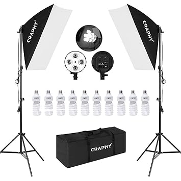 ?Dauerlicht Softbox?Softbox Set ist aus hochwertiges und reflektierendes Material und hat starke Reflektierend Fähigkeit.Silbernes Innengesicht kann den Lichtverlust minimieren und die Lichtausbreitung maximieren ?Weiches Licht?50x70cm Softbox kann größe Fläche von Beleuchung liefern und Schatten reduzieren.135W Tageslichtlampe kann mehr helles Licht liefern und Abdeckung kann Licht weichen,um Ihnen perfektes Beleuchtung zu bieten ?Einfache Verwendung?Softbox 2er Set ist einfach zu installatieren.Robustes Aluminium Stativ, Höhe Von 67 cm bis max. 210 cm, mit dem stabilen Stativ lässt sich die Lichtquelle schnell auf die gewünschte Höhe einstellen ?Multi-Funktion?Dauerlicht Softbox Set eignet sich perfekt für Werbeartikel, Portraitfotografie, Fotokunst und technische Fotografie. ?Guter Partner von Hintergrund Fotostudio ?Dieses Studiosets gilt als gutes Geschenk und ist sehr geeignet für Greenscreen, Sie können genießen es, mit Freunde und Familienmitgleid im Zuhause zu fotografieren.