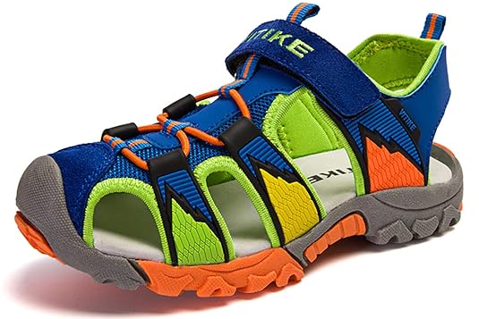 GESIMEI Unisex-Kinder Sandalen Geschlossene für Jungen Mädchen Leder Lauflernschuhe Klettverschluss Leichte Sommerschuhe