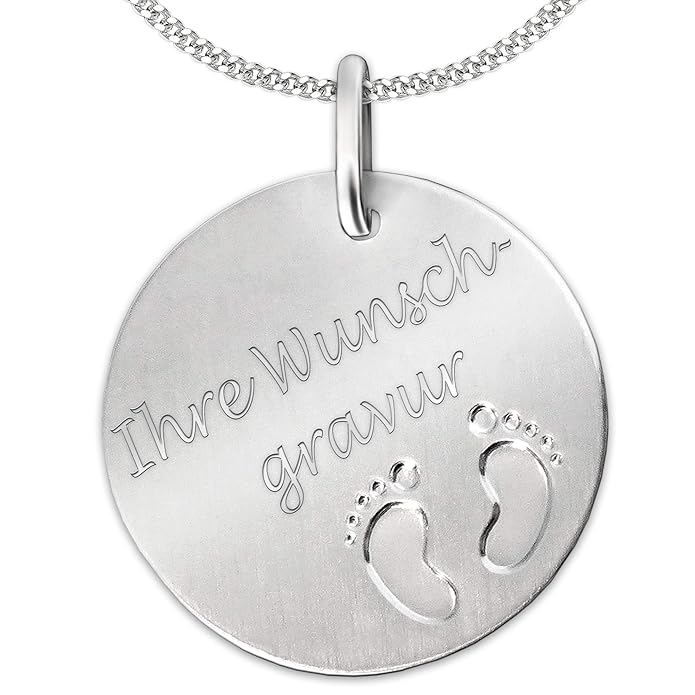 Baby / Kinderkette mit Kettenanhänger kleine ausgestanzte Füßchen inkl. Ihrer Wunschgravur auf der Vorderseite max. 8 Buchstaben.