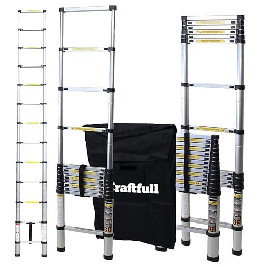 Craftfull Alu Teleskop Klapp - und Anlegeleiter 3,2 - 5 Meter inkl. Tragetasche in Verschiedenen Größen Mehrzweckleiter Stehl