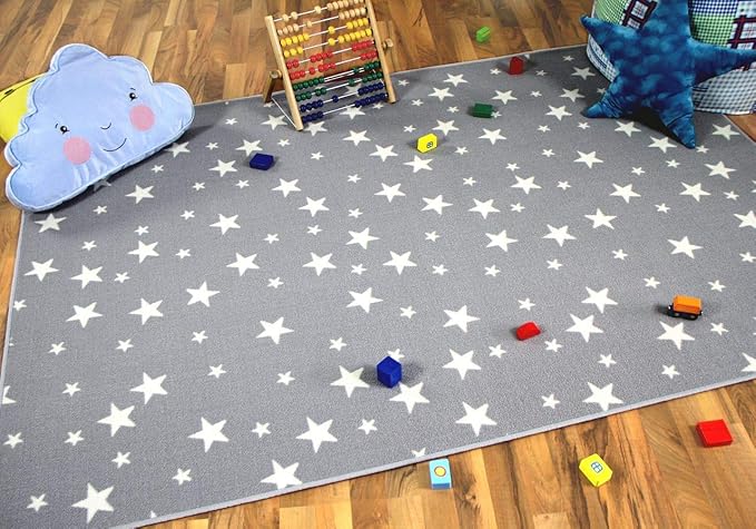 carpet city Kinderteppich Hochwertig mit Sternen-Muster in Pastell-Türkis mit Konturenschnitt, Glanzgarn für Kinderzimmer Grö