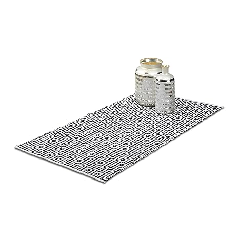 Relaxdays Teppich Baumwolle, Läufer Rutschfest, Teppichläufer Flur, gewebt, Wohnzimmerteppich 70x140 cm, schwarz weiß