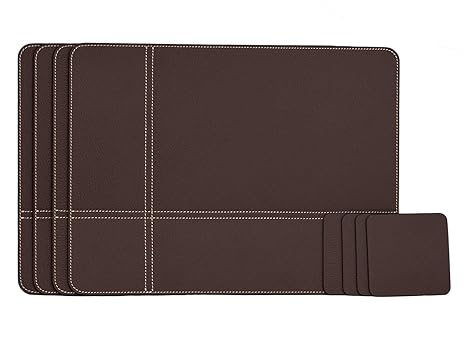 Lindong Abwaschbar Tischset/Platzset 4er Set Premium Pu-Leder Hochwertig Wasserdicht Rutschfest Schmutzabweisend Platzmatte T