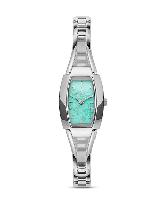 Artikelnummer: 5406503 Glas: Mineralglas, Gehäusematerial: Edelstahl, Armbandmaterial: Edelstahl Gehäusefarbe: silber, Ziffernblattfarbe: türkis, Armbandfarbe: silber, Wasserdichte in Bar: 3 Gehäuseabmessungen: Länge: 3,9 cm, Breite: 2,8 cm, Höhe: 0,8 cm, Armbandabmessungen: Länge: 18,5 cm, Breite: 1,4 cm Uhrwerk: Quarz