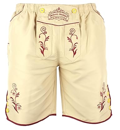 Lederhosen Badehose Bestickt, 3X große Hosentaschen - Innennetz - Herren Trachten-Hose für Urlaub oder Badesee - Bayrische Ba