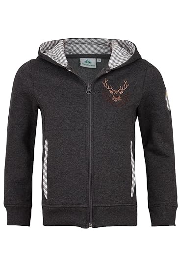 Isar-Trachten Kinder Kapuzenjacke Trachtenjacke Sweatjacke mit Hirschstickerei und Kapuze 57301