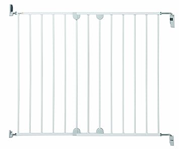 ? TÜR ÖFFNET BEIDSEITIG & EINHANDBEDIENUNG: Die komfortable Einhandbedienung ermöglicht es, das Schutzgitter zu bedienen, selbst wenn das Baby gerade auf dem Arm getragen wird. Egal von welcher Seite man das Schutzgitter erreicht, man kann es immer nach vorne in Laufrichtung bewegen ohne der Tür ausweichen zu müssen.