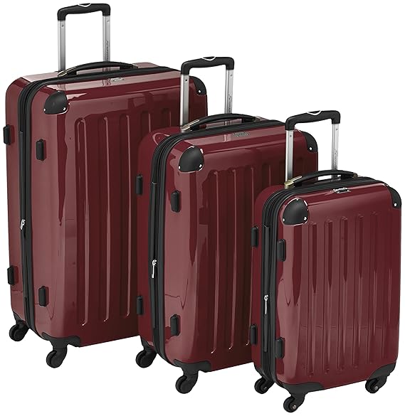 Komfortables Set in 3 Größen: Für jede Gelegenheit ein passender Koffer. Mit dem Handgepäck (55 x 35 x 20 cm) lässt es sich entspannt fliegen – er ist ein passender Begleiter für fast jede Airline. Der mittelgroße Reisekoffer (65 x 41 x 26 cm) sowie der große Hartschalen-Trolley (75 x 50 x 30 cm) bietet großzügig Platz für Kurztrips und ausgedehnte Weltreisen. Leichtgängig und bequem: Die vier gummierten Spinner-Leichtlaufrollen (360° drehbar) sind besonders leise und wendig. Mühelos lässt sich der Trolley manövrieren und sanft über jeden Gehweg rollen. Die vollversenkbare Teleskopstange ist verschiedenstufig arretierbar, so lässt sich der Koffer bei geringem Kraftaufwand schieben oder ziehen. Ein widerstandsfähiger Reise-Gefährte: Die stilvolle Hochglanzoberfläche aus ABS mit Polycarbonatbeschichtung verleiht dem Reisekoffer sein edles Finish. Sie ist besonders bruchsicher, stabil und stoßunempfindlich. Dank der stoßabfedernden Schutzkappen bewahrt der Kabinen-Trolley selbst bei unsanftem Umgang – beispielsweise der Gepäckabfertigung - seine Form. Sicherheit: Das Zahlenschloss des Koffers mit seinem dreistelligen Code lässt sich individuell einstellen. Selbstverständlich können die Zipper des Reißverschlusses abgeschlossen werden und schützen den Kofferinhalt vor Zugriffen durch Unbefugte. Mehr Platz durch zusätzliches Volumen: Extra Raum für Souvenirs dank der großzügigen Volumenerweiterung (bis zu 20%) durch Öffnen eines zusätzlichen Reißverschlusses.