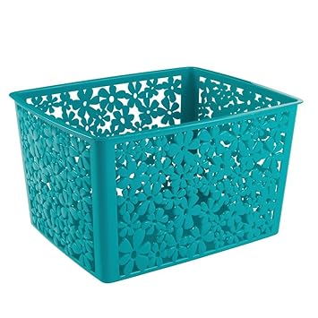 iDesign 59339EU Blumz Aufbewahrungskorb für Küche/Bad/Büro/Garage, 21,59 x 27,43 x 35,81 cm, Mint, Plastik