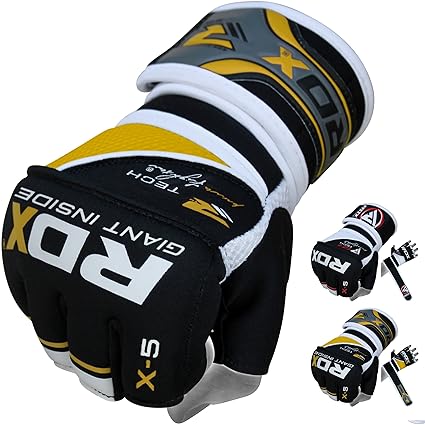 ?Elastische und synthetische Maya Hide Konstruktion?RDX MMA-Handschuhe sind mit 100% echtem Maya-Hide-Leder verstärkt, um eine überlegene Qualität zu gewährleisten. Unsere MMA Handschuhe sind unübertroffen und echtes Material hilft perfekt bei Mixed Martial Arts, beim Training oder Boxen. Es hilft dir sehr viel, wenn du dich mit den gleichen Handschuhen ausrüstest. Die Lederqualität bietet eine bessere Tragbarkeit, Rissbeständigkeit, Verschleißfestigkeit und mehr.