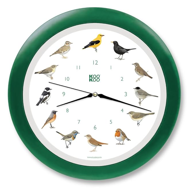 KOOKOO Singvögel Quarzwerk Grün, Die Singende Vogeluhr, ist eine Uhr mit 12 heimischen Singvögeln und echten, natürlichen Vog
