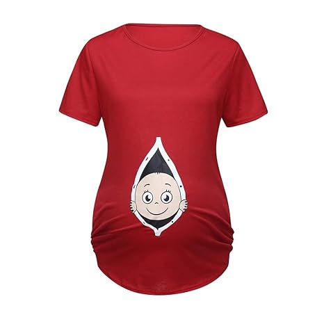 Lonshell Schwangerschaftshirt Lustiger Musterdruck Umstands-Top Kurzarm T-Shirt Mutterschafts Sommer Bluse Umstandsmode Umsta