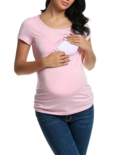 MCYs Frauen Sommer Einfarbig Schwangerschafts Baby für Mutterschafts Multifunktionsblusen T-Shirt Bluse Top Stilltop Umstands