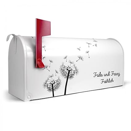 FUNKTION: Die banjado US Mailbox bietet Ihnen ausreichend Fassungsvermögen um große A4 Sendungen und Zeitschriften zu empfangen. Die typisch amerikanische rote Fahne zeigt Ihnen an wenn Sie Post haben. DESIGN: Unser amerikanischer Briefkasten hat ein sehr ansprechendes und ausgefallenes Design, ist Stahl weiß mit einem individuellen Motiv. Damit entlocken Sie Ihrem Postboten ein Lächeln. DETAILS: Der Postkasten besteht aus weißem pulverbeschichtetem Stahl. Er ist 51x22x17cm groß. Das Motiv besteht aus einer wetter- und UV-resistenten Folie die mit einem Schutzlaminat überzogen ist, sodass die US Mailbox auch vor Kratzern geschützt ist. NUTZEN: Die US-Mailbox wird ein treuer Begleiter in Ihrem Alltag sein. Ausreichend Platz auch für große Sendungen, eine Fahne die Ihnen Post anzeigt, wetterfestes und äußerst stabiles Material - so macht Post empfangen Freude. BANJADO: Ihre Mailbox kommt original aus Mississippi USA, heißt dort Letterbox und wird in Dresden in einer kleinen Manufaktur von Hand veredelt. Die Motivfolie ist lösungsmittelfrei und schutzlaminiert für einen langen Halt. Wir legen großen Wert auf die Verbindung von Funktionalität und Design. › Weitere Produktdetails