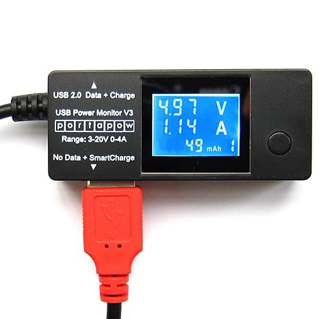 Das ist ein das stärkste und minimal USB-Multimeter jemals. Geeignet für irgendein USB-Socket, Sie können der Ladezustand überwachen und schützen Ihr USB-Geräte, zum Beispiel Mobiltelefone und Tablets Es bietet alle Informationen an, die Sie benötigen: Strom (A) Spannung (V) Energie (Wh) Widerstand Kapazität (mAh) und Leistung (W) Gehen aus der Steck zu dem Gerät, Sie aufladen davon in die Echtzeit Lade. Es zeigt auch die kumulative Zeit (Sekunden), Temperatur der Vorrichtung Mehrere Modi: Messen Sie Strom, Spannung, Kapazität, Über/Unter Spannung und Leistung Ihres im z.B. Handy, Notebook, Powerbank verbauten Akkus oder Ladekabels Sicher: Kann bei jeder Ladung zwischen Gerät und Ladekabel angeschlossen werden und verhindert mit der Ausschalt Automatik eine Beschädigung des Akkus Klicken Sie einmal auf den 'Key', um Modi zu wechseln (Mode 1-5). Klicken Sie doppelt Strom zu rückstellen; DreSpezielles Design ermöglicht es Ihnen, das Multimeter beide Seiten einzufügen, bedeutet, dass Sie immer den Bildschirm vor Ihnen haben, Eingangsspannung: 3V-30V Eingangsstrom: 0-5.1A › Weitere Produktdetails