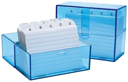 WEDO Karteibox DIN A8 quer inklusive 100 Karten und alphabetischem Register Fassungsvermögen: ca. 150 Karten Aus transparentem, blauem Kunststoff. Mit Schnappverschluss. Maße: 8,3 x 4,6 x 8,5 cm › Weitere Produktdetails