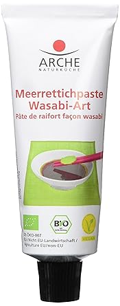 Arche Naturküche Wasabi Meerrettich Würzpulver. Wasabi verleiht vielen Gerichten den richtigen Biss! Zubereitung: 1TL Wasabi Pulver mit 1TL Wasser anrühren, zudecken und 5 Minuten ziehen lassen. Zutaten: Meerrettich*, Wasabi* (japanischer Meerrettich*) (10%). *aus ökologischem Landbau. Allergenhinweise: Spuren möglich: Soja und Senf › Weitere Produktdetails