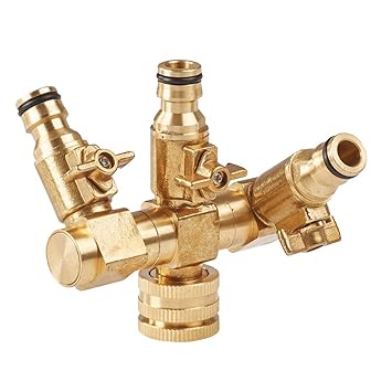 Fdit 4 Wege Garten Tap Schlauch Splitter Adapter Messing Düse Tap Gartenschlauch Teilen Steckverbinder für Garten Bewässerung