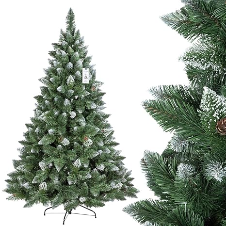 Wir bieten Ihnen die schönen Tannenbäume an, die problemlos sind - keine langen Recherchen nach dem entsprechenden Baum und keine runterfallenden Blätter mehr. Der Tannenbaum sieht immer frisch und schön aus. Dank dem Plastikständer wird Ihr Fußboden nicht erkratzt werden! Die Tannenzweige sind gleichmäßig von unten nach oben aufzuspannen. Man bekommt das Effekt wie auf dem Foto nur dann, wenn die Zweige korrekt aufgespannt werden. Jeder Baum stützt sich auf einer starren Stahlrohr mit einem stabilen Abschluss, so sind Sie sicher, dass der Baum immer aufrecht steht und sich jederzeit wirklich schön präsentiert. Die Größe wurde vom Ständer bis zur Spitze gemessen. Die Spitze ist in der Wirklichkeit länger als auf dem Foto, aber man kann sie nach Bedarf einfach abkürzen. Auf dem Foto wurde die Tanne in der Größe 290cm dargestellt. Hier finden Sie die anderen Weihnachtsdekorationen: http://www.amazon.de/s/ref=nb_sb_noss?__mk_de_DE=%C3%85M%C3%85%C5%BD%C3%95%C3%91&url=search-alias%3Dkitchen&field-keywords=DecoKing+Weihnachtsdeko&rh=n%3A3167641%2Ck%3ADecoKing+Weihnachtsdeko