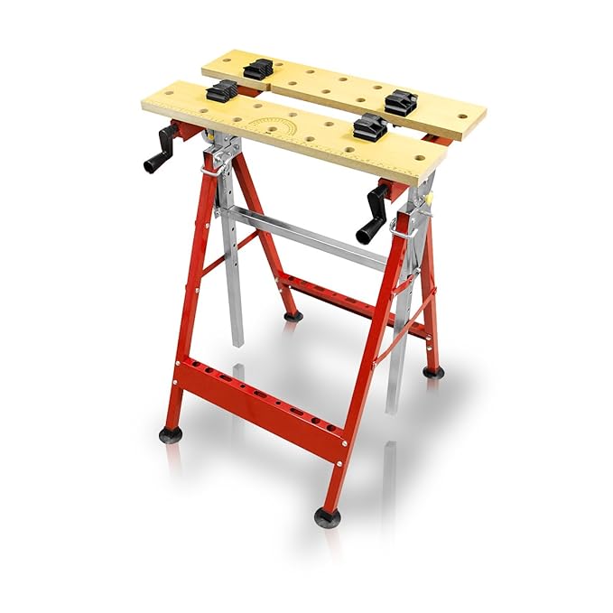 ?BREITES ANWENDUNGSBEREICHE? Idealer Arbeitstisch zum Sägen, Schleifen, Reinigen, Kleben & vielem mehr. Perfekt auf die verschiedenen Anwendungsgebiete einstellbar. Es kann als Hocker, Schraubstock, Werkbank und mehr verwendet werden.
