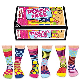 United Oddsocks - Polka Face - Punkte, Streifen - Damen - 6 verschiedene Socken - Polka dots Gr. 37-42