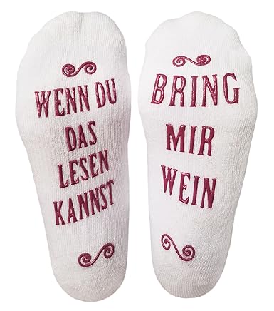 Lustige Worte unter den Füßen: Wenn du das lesen kannst, bring mir Wein. EINHEITSGRÖSSE: Flexible, warm und Atmungsaktiv. Für Schuhgröße 35-43 geeignet. Diese Unisex Socken aus gefertigt aus gekämmter 70,5% Baumwolle, 25,7% Polyamid und 3,8% Elastan Sneaker Socken & 2 Paar Ein Romantisches, lustiges Geschenk für die Geliebte zu Weihnachten, Gedenktag, Valentinstag oder Geburtstag. Erntedankfest. 30-TAGE GARANTIE: Jede aus uns verkäuften Produkten wurde durch ernsthalte Qualitätprüfung bestanden. Wir hoffen, alle Kunden könnten unsere Produkten anerkennen und weiter empfehlen. Du kannst alle unserer Produkte in 30 Tage zurückschicken, falls sie dir nicht gefallen