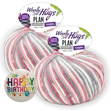 Geschenke Set aus 2 Knäuel Woolly Hugs Pool a je 100g + DIY Geschenke Button. Per Amazon Prime verfügbar.