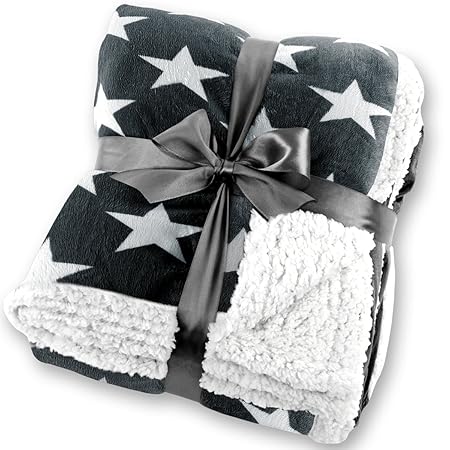 NIBESSER Kuscheldecke Tagesdecke Mikrofaser Coral-Fleece Wohn-Decke Bettüberwurf 150×200 cm (Stern)