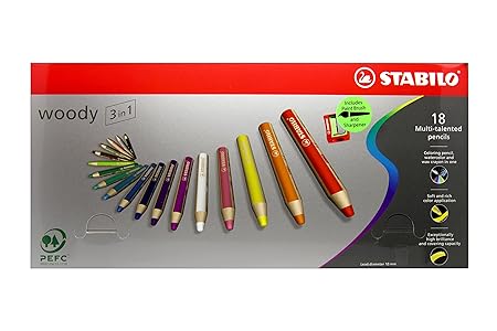 Stabilo Woody 3 in 1 Multitalent Jumbo Bleistifte Inklusive ein Kind Sicherheit Spitzer 3 in 1.... erhalten Sie ein XXL Buntstift, Aquarell Bleistift und Wachsmalkreide All in 1. XXL Mine dass leicht Farben Große Flächen Halbe Größe Buntstifte, ideal für jüngere Kinder › Weitere Produktdetails