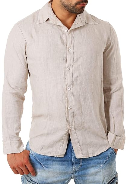 Young & Rich Herren Leinenhose Sommerhose 100% Leinen mit Kordelzug Straight Regular Fit S4103