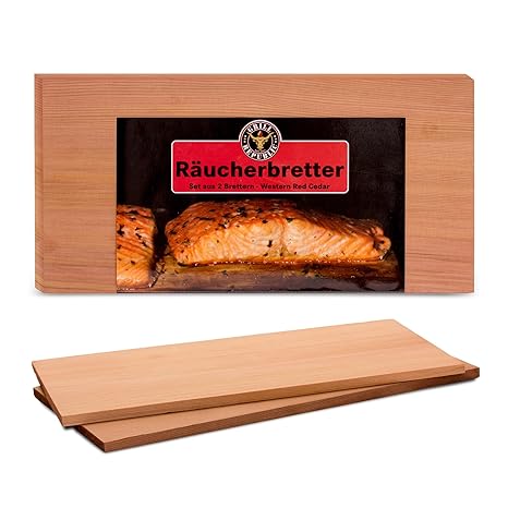 Räucherbretter aus kanadischem Zedernholz, Grillbretter, (Set glatte und raue Oberfläche) unbehandelt, Gratis Rezept (PDF) -
