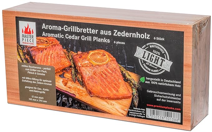 Mildes Zedernholz Raucharoma – perfekt zum Grillen von Fisch, Fleisch und Gemüse / auf Gas-, Kohle- und Elektrogrills Mit Mikro-Rillung für optimale Entfaltung des Zedern-Aromas + 3 Rezepte im Produkteinleger Hergestellt in Deutschland - 100 % natürliches Holz aus nachhaltiger Forstwirtschaft Extrastarke 15 mm – unsere Profiplanke für langanhaltenden Grillgenuss / mehrfach verwendbar Geprüft durch SGS INSTITUT FRESENIUS auf den Kontakt mit Lebensmitteln / Die Verpackung erfolgt unter Europäischen Hygienestandards › Weitere Produktdetails