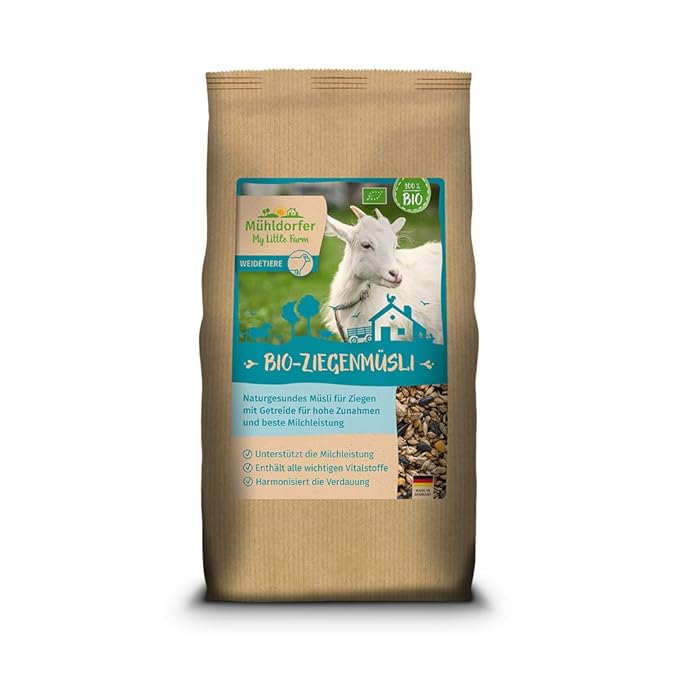 Ein strukturreiches Aufzuchtmüsli, das die Pansenentwicklung bei jungen Ziegen während der Umstellung von Milch auf Kraftfutter stimulierend unterstützt. Denn je besser der Pansen entwickelt ist, desto geringer ist das Risiko, dass die Tiere Lungenentzündungen oder Durchfall bekommen. Durch die Unterstützung der Abwährkräfte wird so ein besseres Heranwachsen der Jungtiere ermöglicht. Mit vielen Luzernefasern, aufgeschlossenem Getreide und Pansenstabilisatoren. Ab einem Alter von wenigen Tagen zu füttern, sobald das Jungtier mit seiner Mutter mit frisst. Zusammensetzung: Vitaminkorn*, Maisflocken, Gerstenflocken, Mais aufgeschlossen, Dinkel, Rohrzuckermelasse, Luzerneheu *) hergestellt aus gentechnisch veränderten Sojabohnen und/oder Mais Stimuliert die Verdauung und unterstützt die Aufzucht von jungen Ziegen. › Weitere Produktdetails