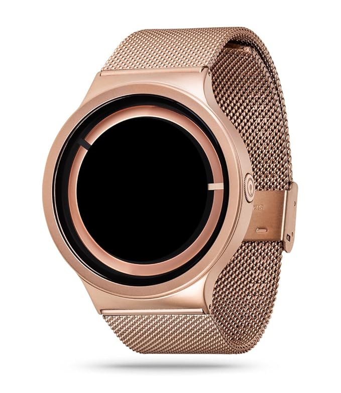 ZIIIRO Lunar Rose Gold Metallic Unisex Armbanduhr Analog Quarz minimalistische Designer Uhr Halbmond mit Metallarmband Mesh