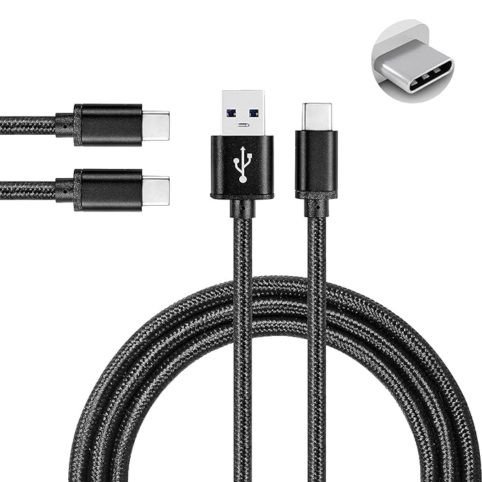 Archos Sense 50DC / Sense 55DC Starkes Nylon Geflochten USB C Kabel auf USB 2.0 [1M] USB Type C Ladekabel – 2er Pack SCHWARZ