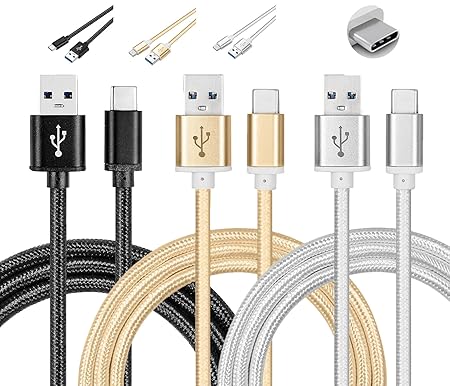Cubot Cheetah 2 Starkes Nylon Geflochten USB C Kabel auf USB 2.0 [1M] USB Type C Ladekabel – Packung mit 3 Sorten [Metall Ste