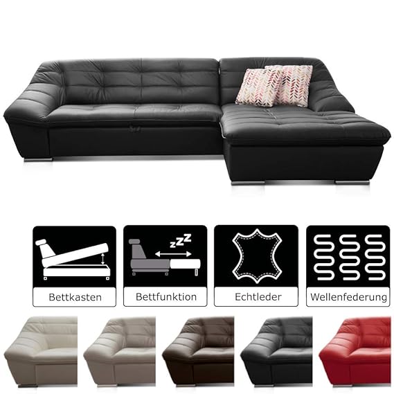 Elegante Schlafsofa mit Bettkasten Absolut ebene Schlaffläche: 175x104 cm Elegante Verchromte Füße Sofa erhältlich in 3 Farbkombinationen Die Polstermöbel werden von der Spedition ausgepackt und montiert ohne Aufpreis