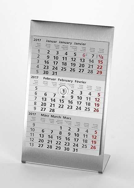 Jahreszahl: aktuelles Jahr + Folgejahr Anzahl der sichtbaren Monate: 3 Wochenzählung (J/N): Ja - Aufstellmechanismus: Ja Datumsschieber: Ja › Weitere Produktdetails