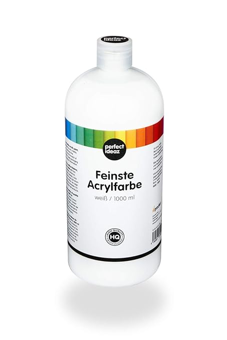 perfect ideaz 1000 ml Acryl-Farbe weiß, Acrylic Paint hoch-deckend, Kreativ-Mal-Farbe in Weiss, ideal zum Mischen von Farben,