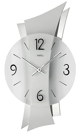 AMS W9388 Quarz-Wanduhr Dekorative Metallauflagen auf Metallstäben Mineralglas Made in Germany Ästhetik und Qualität für gehobene Ansprüche us zukunftsorientierten Materialien Größe: 23 cm x 47 cm x 5 cm (B x H x T) Quarzwerk Glas Zifferblatt mit arabischen Ziffern und Strichindex