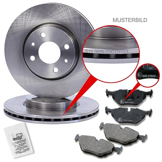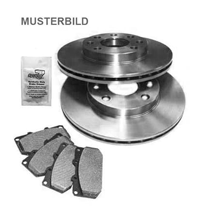 Lieferumfang: 2x Bremsscheibe Vorderachse BELÜFTET, 1x Satz (4 Stück) Bremsbeläge Vorderachse, 1x Anti-Quietsch-Paste gegen Bremsenquietschen (nicht auf die Reibfläche des Bremsbelages oder der Bremsscheibe aufbringen!)