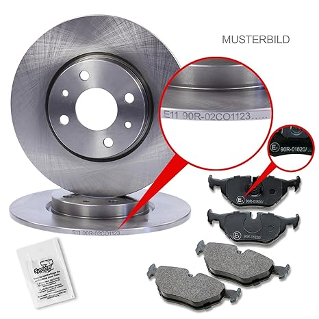 Lieferumfang: 2x Bremsscheibe Hinterachse BELÜFTET, 1x Satz (4 Stück) Bremsbeläge Hinterachse, 1x Anti-Quietsch-Paste gegen Bremsenquietschen (nicht auf die Reibfläche des Bremsbelages oder der Bremsscheibe aufbringen!)