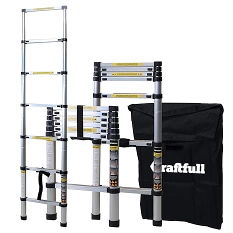? Hochwertige ausziehbare Klappleiter ? Original Craftfull ? CF-102A ? Klappbar ? Eloxiertes Aluminium ? 5 verschiedene Größen ? 2 x 1.6 ( 3.2 ) - 2 x 1.9 ( 3.8 ) - 2 x 2.2 ( 4.4 ) - 2 x 2.5 ( 5 ) - 2 x 2.8 ( 5.6 ) Meter ? Extrem Platzsparend ? Sicherheits-Rasterverschlüsse ? Vierkant-Profil-Sprossen ? Anti-Rutsch Füße ? Inkl. Tragetasche ? Bis 150 Kg belastbar ? Durch Doppelhohlkehlenprofil & speziellen Gleitbuchsen ? Europäische Norm EN131 ? Einsetzbar ? Haushaltsleiter - Stehleiter - Schiebeleiter - Mehrzweckleiter › Weitere Produktdetails